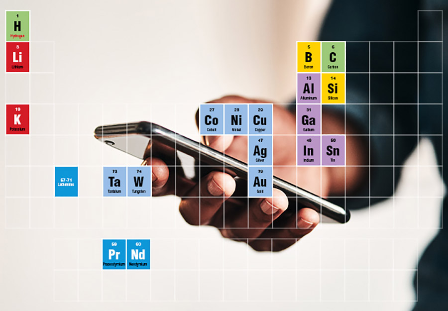 From gold in the electronics to carbon in the frame to lithium in the battery, more than 40 mined metals and rare earths are used to make a cell phone.